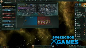 - Галактическое общество: сила в объединении, империи, сенат помогут продвинуть ваши взгляды. Санкции для тех кто не подчиняется! Обеспечьте себе влияние в сенате, объявите себя лидером.